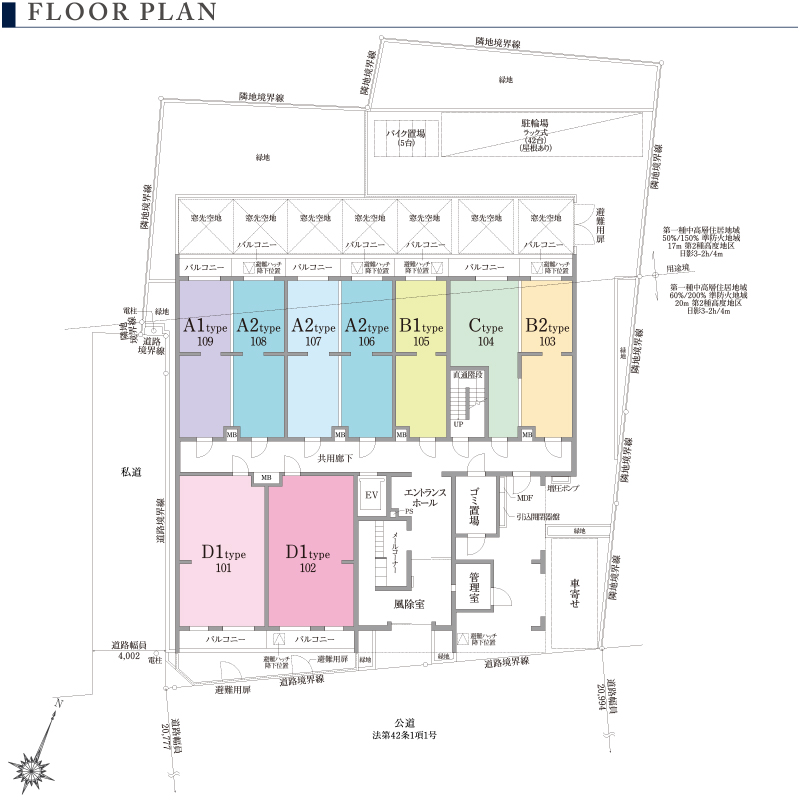建ぺい率(許容建ぺい率) 65.99%(60%+10%(角地)/ 50%+10%(角地))