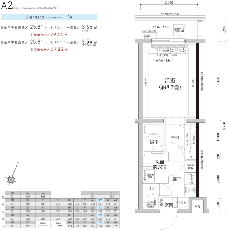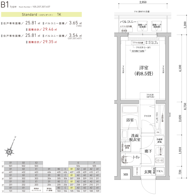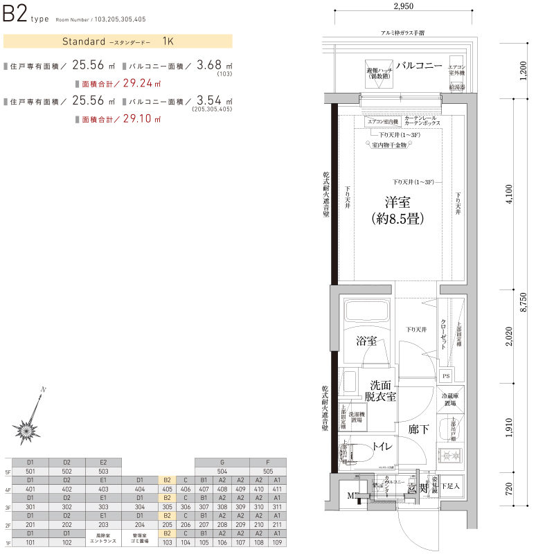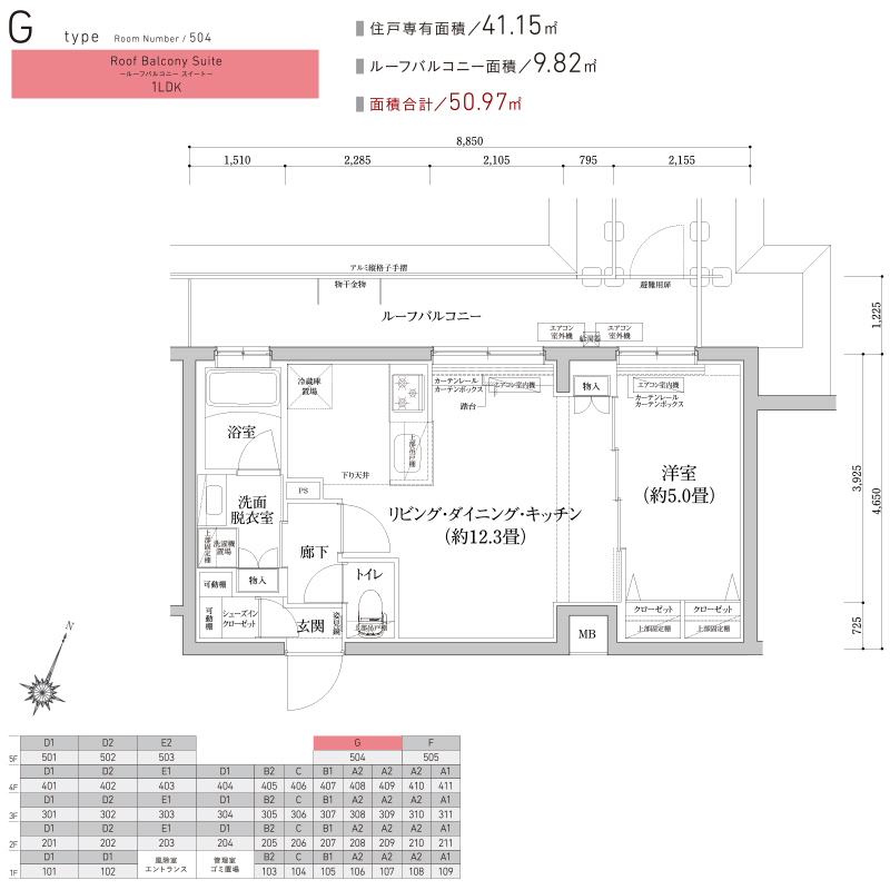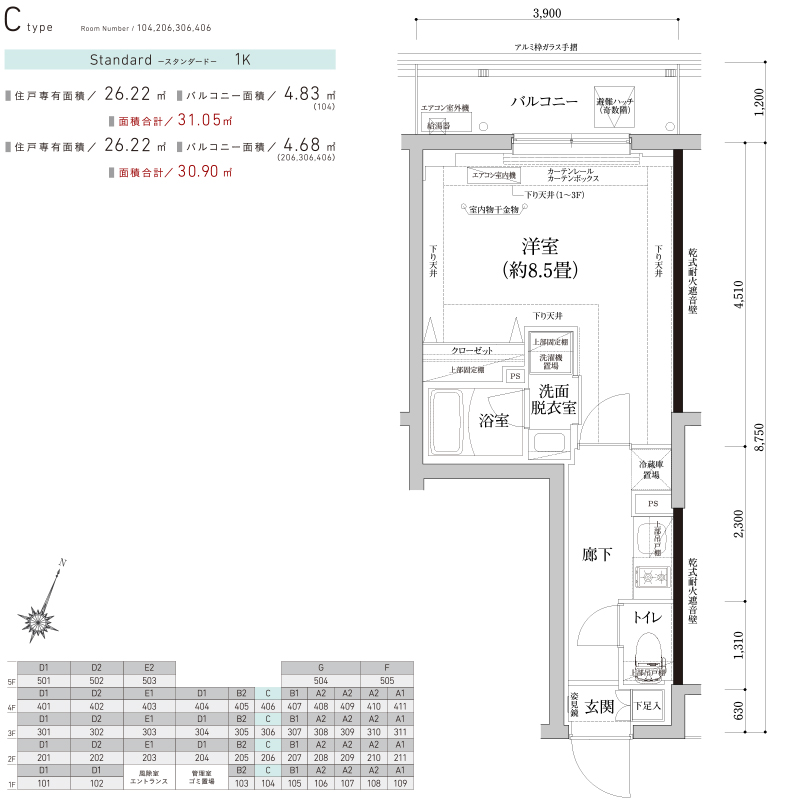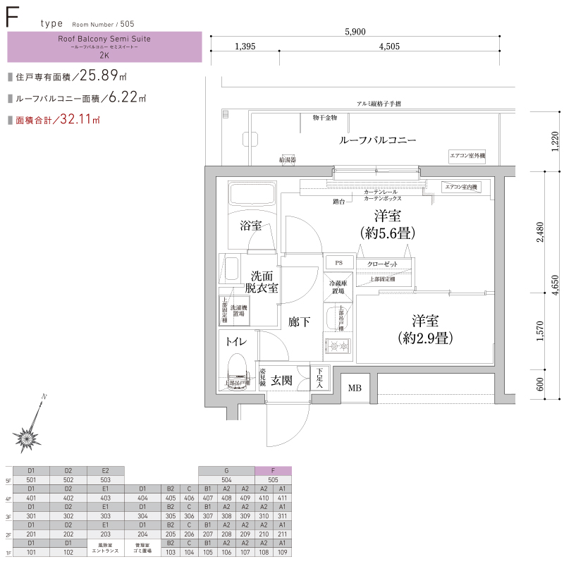 間取り standard(1K)・Suite(1LDK)・Roof Balcony Semi Suite(2K)・Roof Balcony Suite(1LDK)