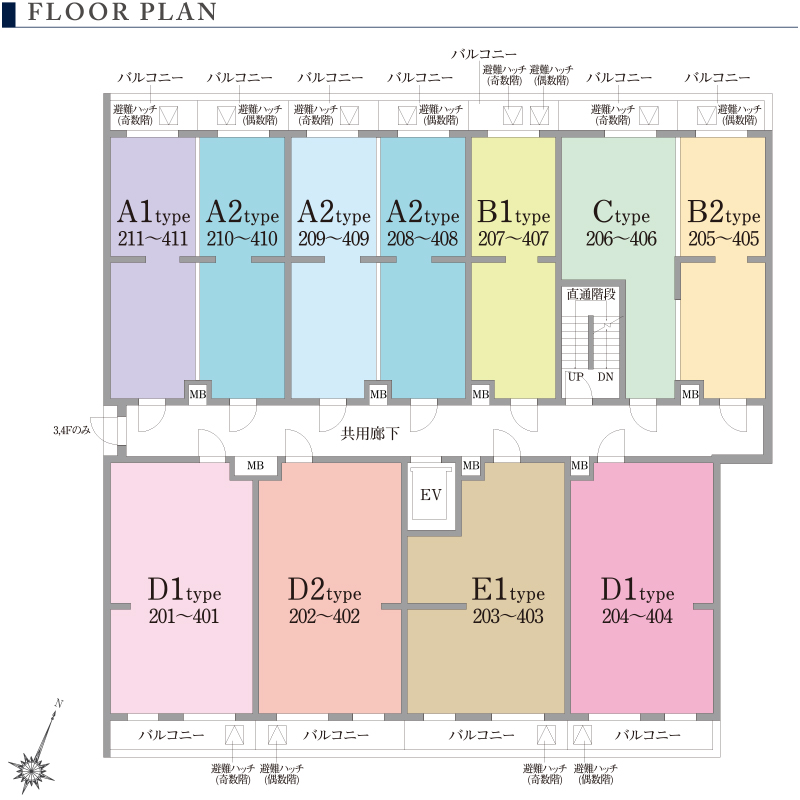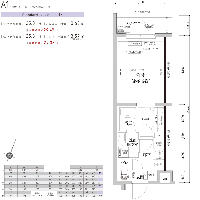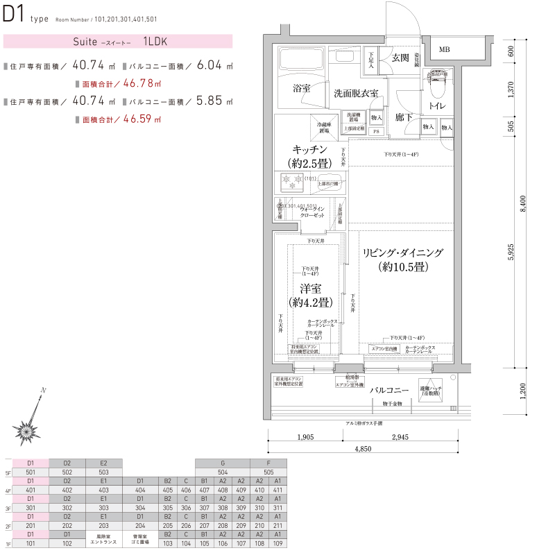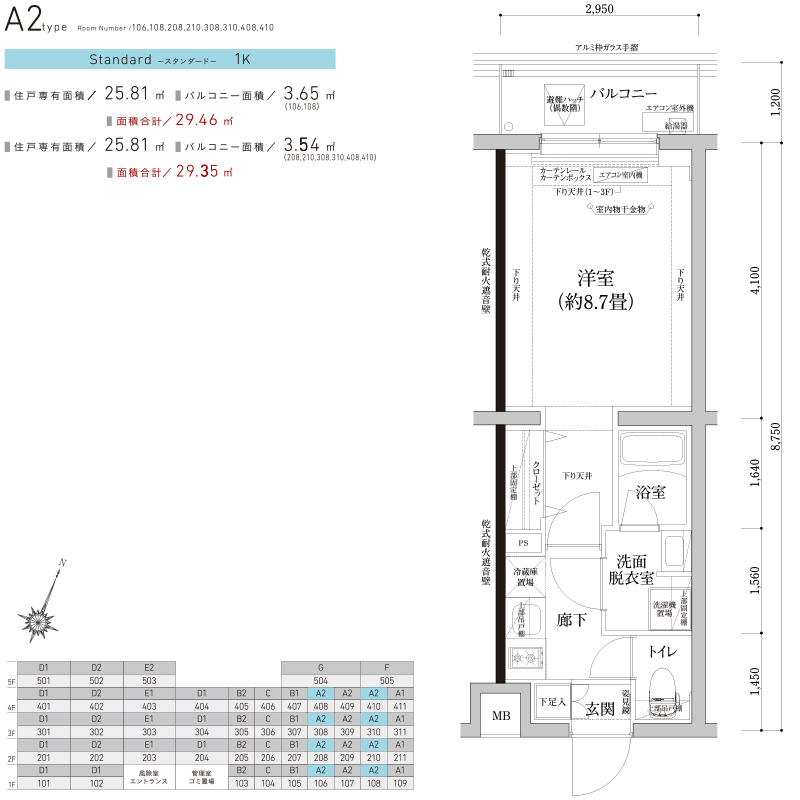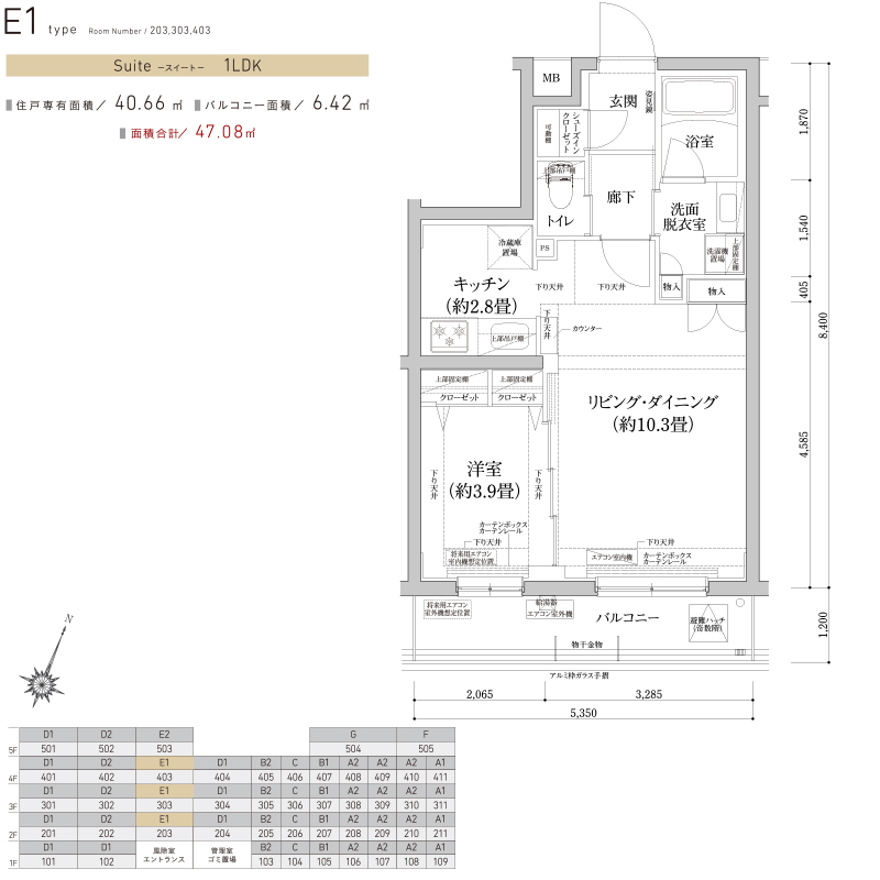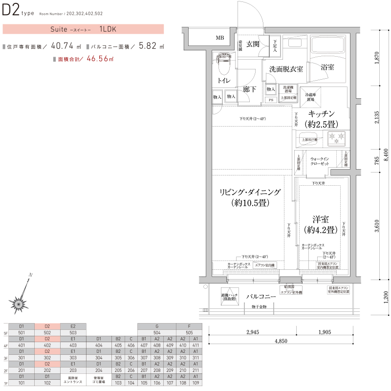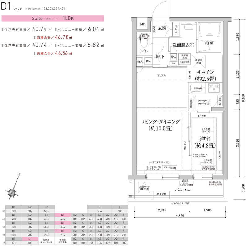 間取り standard(1K)・Suite(1LDK)・Roof Balcony Semi Suite(2K)・Roof Balcony Suite(1LDK)