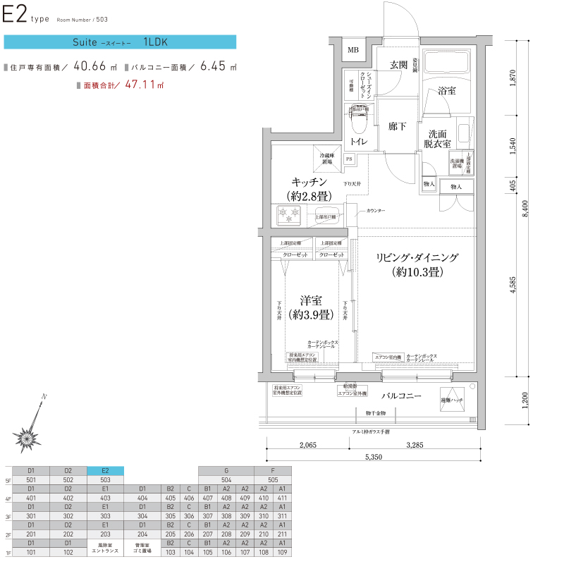 バルコニー面積 3.54㎡~6.45㎡(ルーフバルコニー6.22㎡・9.82㎡)